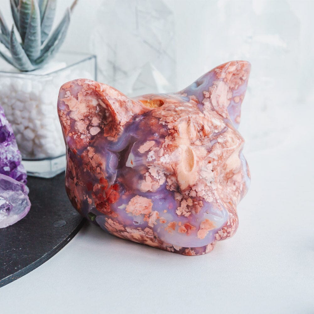 Pink Agate Cat Head