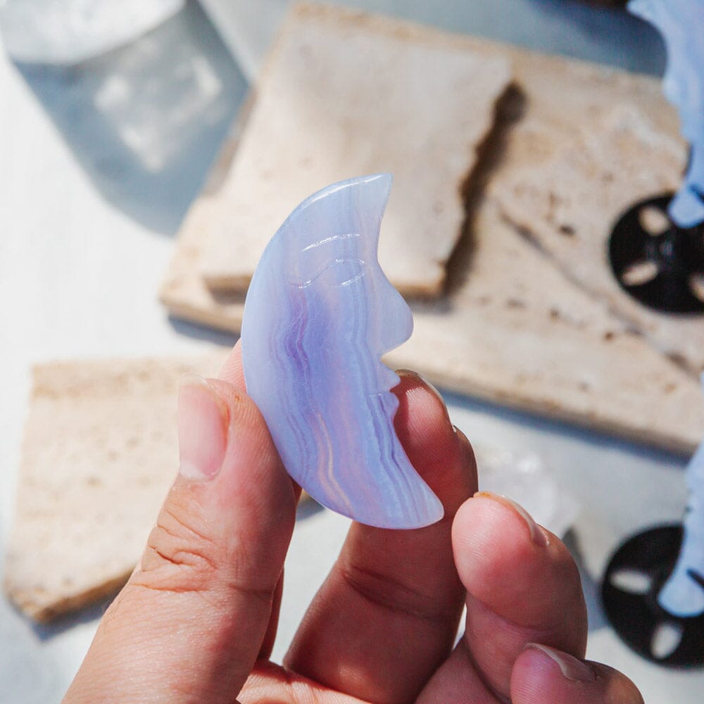 Blue Lace Agate Moon Face