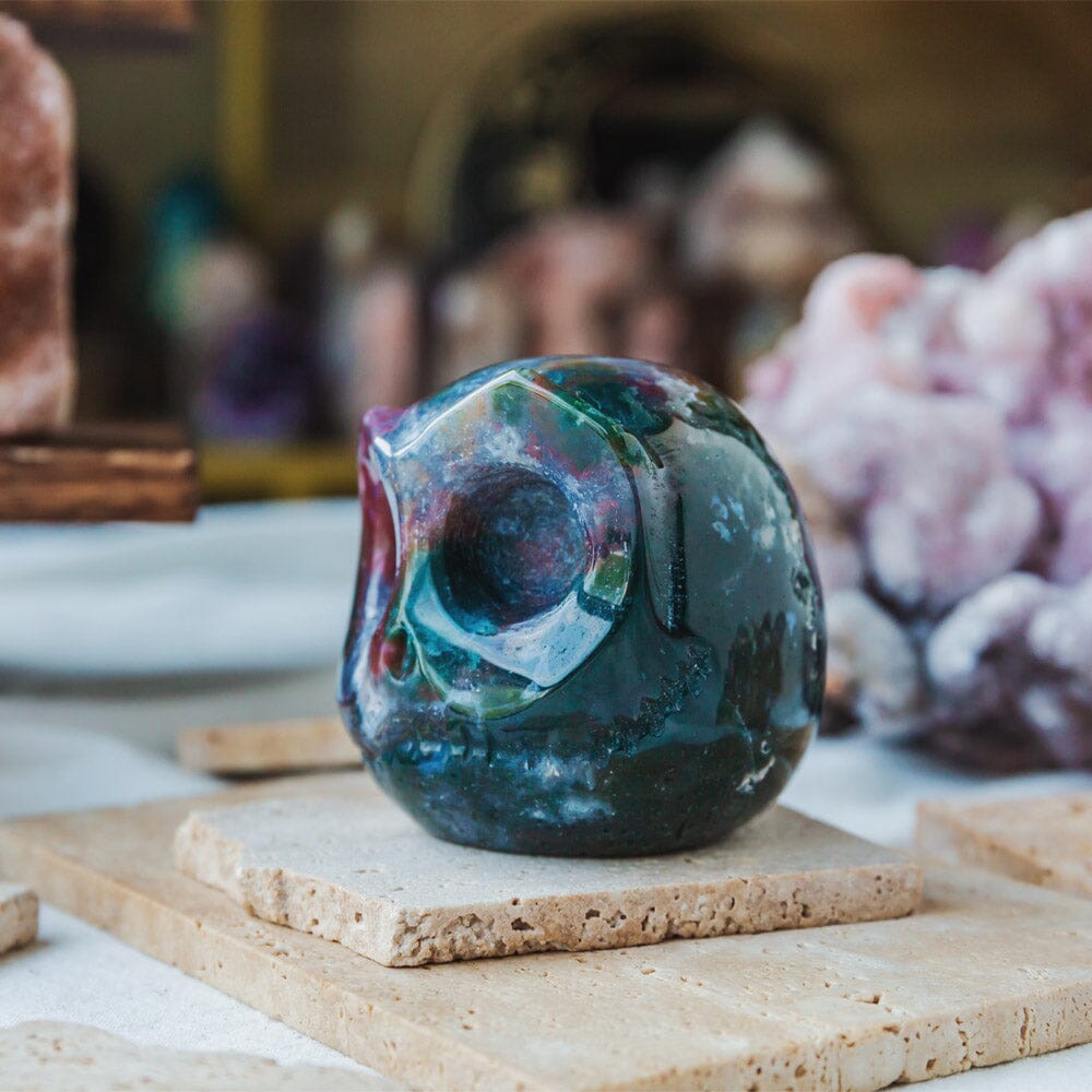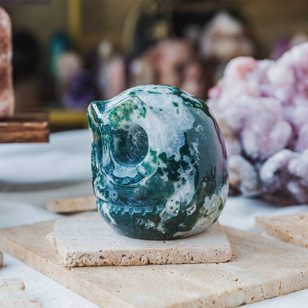 Moss Agate Jack Skull