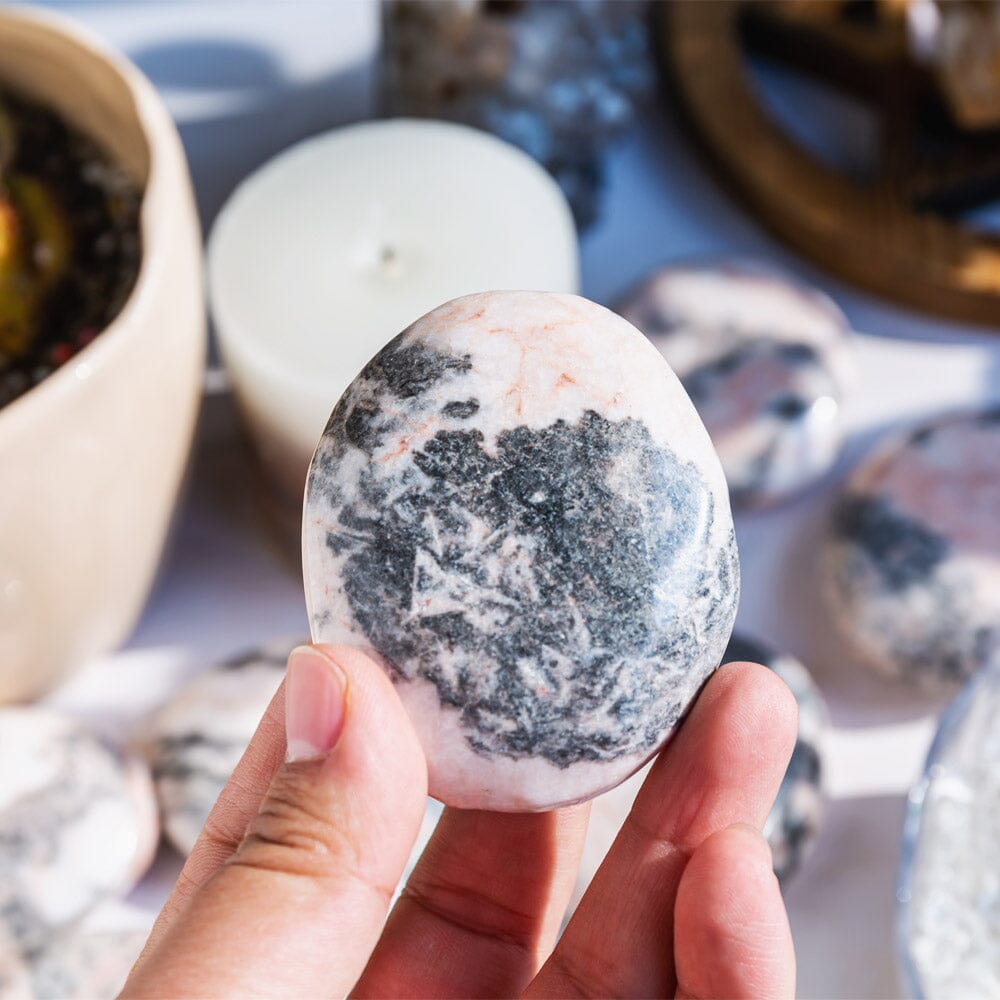 Pink Zebra Jasper Palm Stone