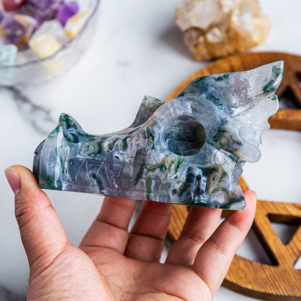 Moss agate dragon head