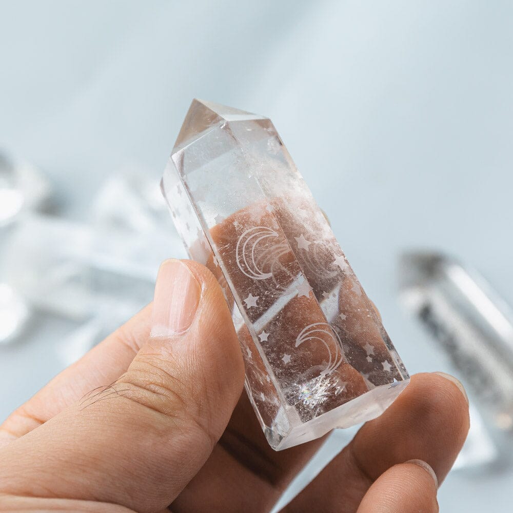 Clear Crystal Pillars With Star and Moon