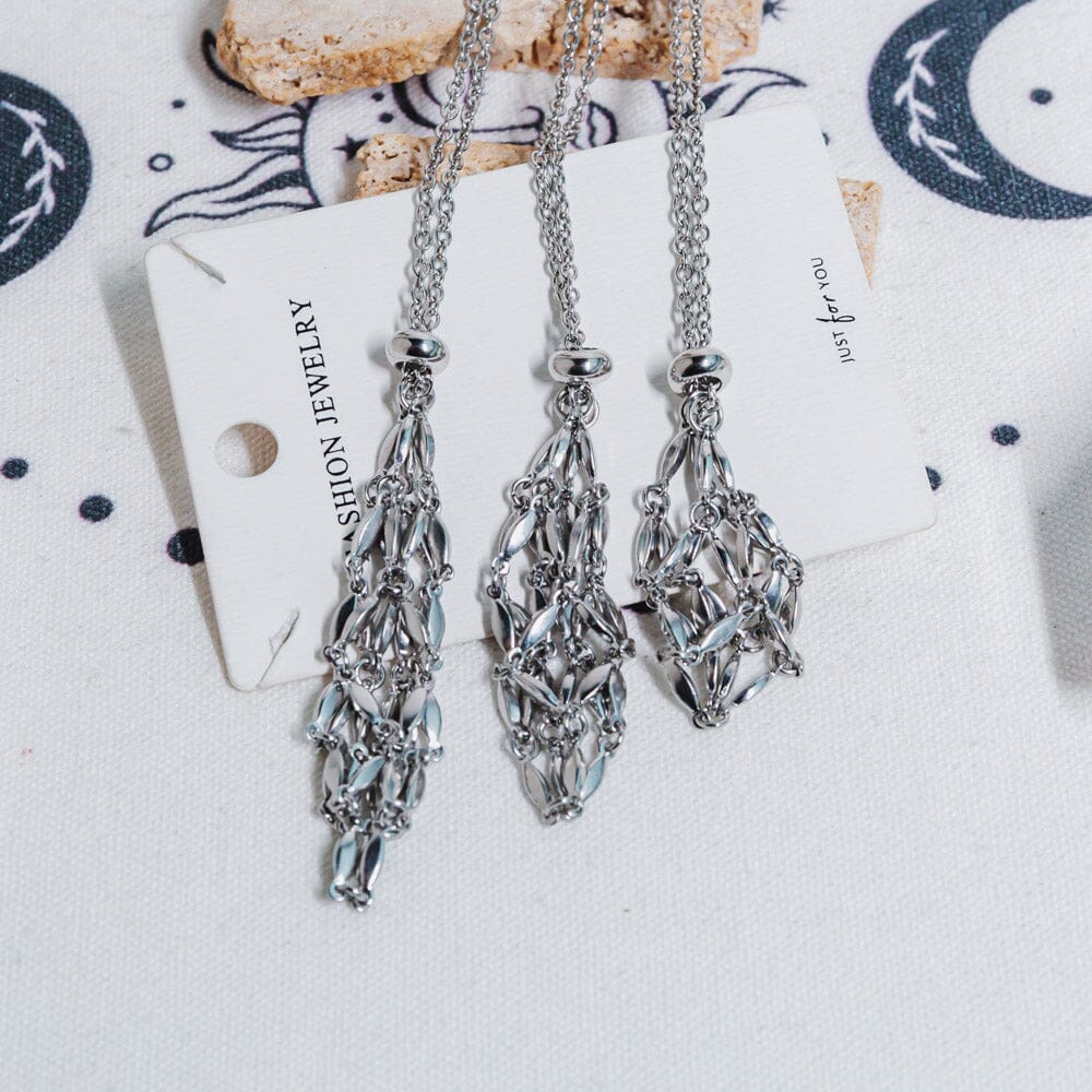 Aura Net Metal Bamboo Necklace Woven Pendant