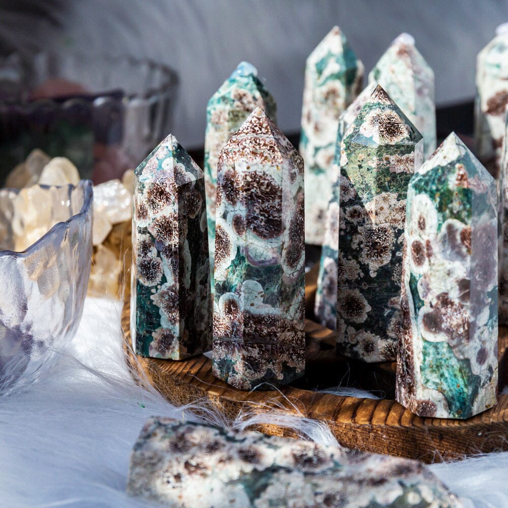 Moss agate moon wand