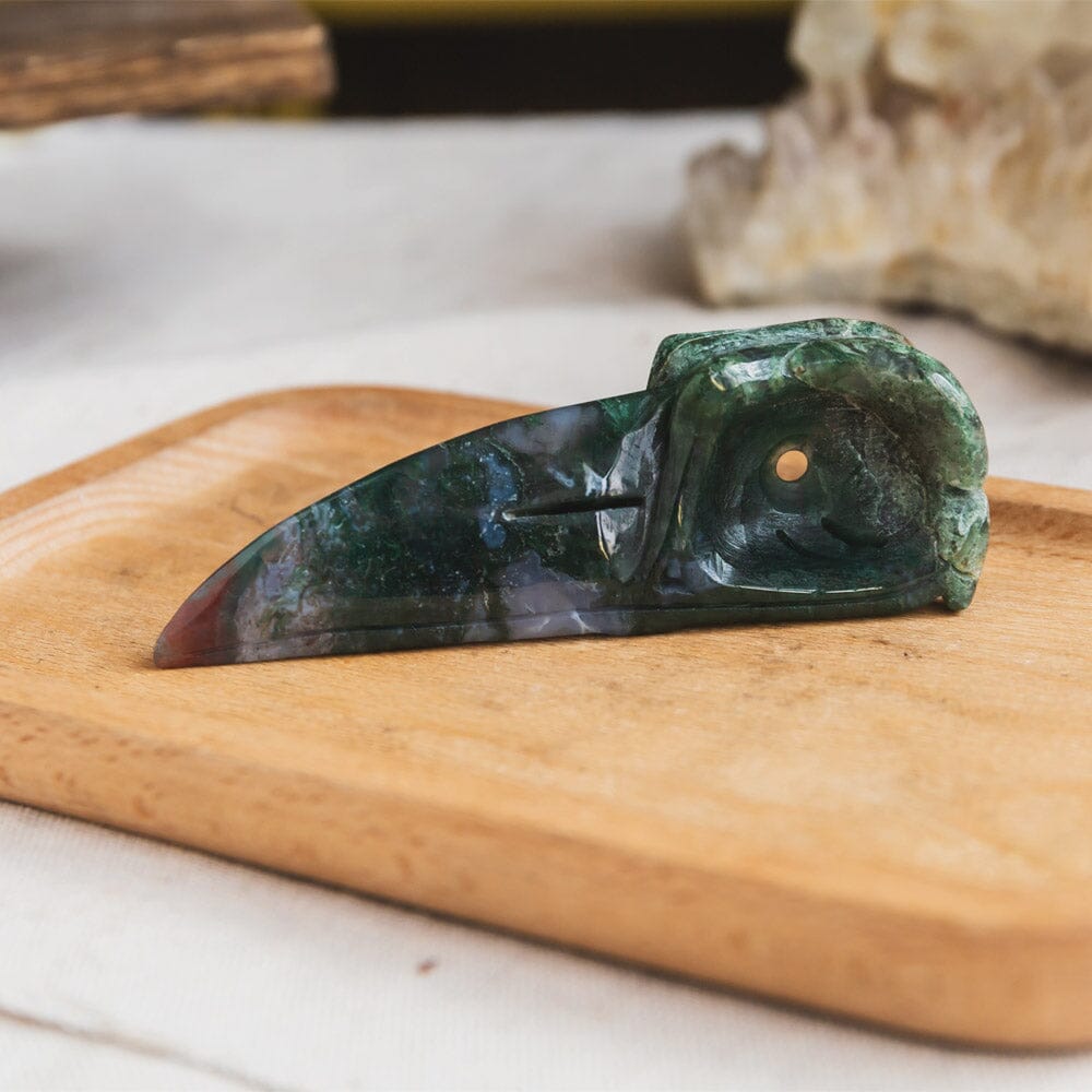 Moss Agate Raven Skull