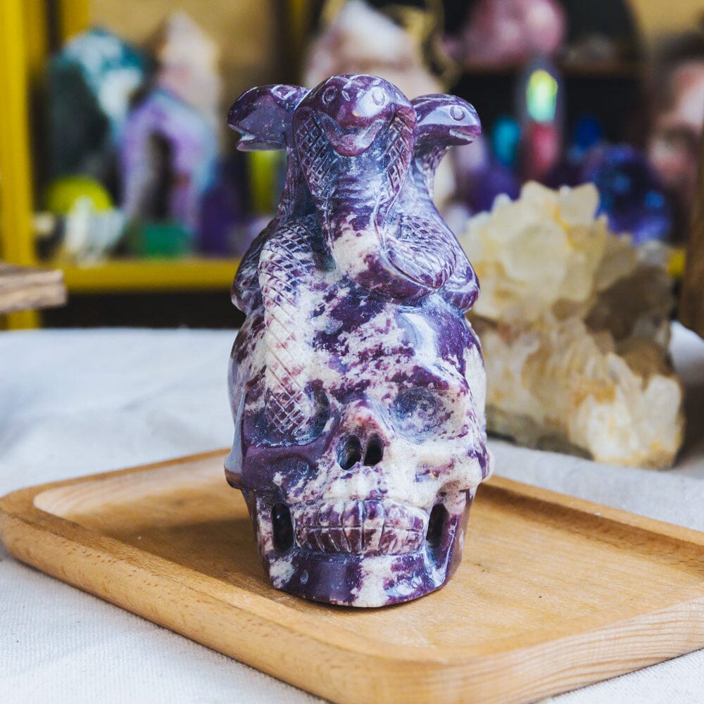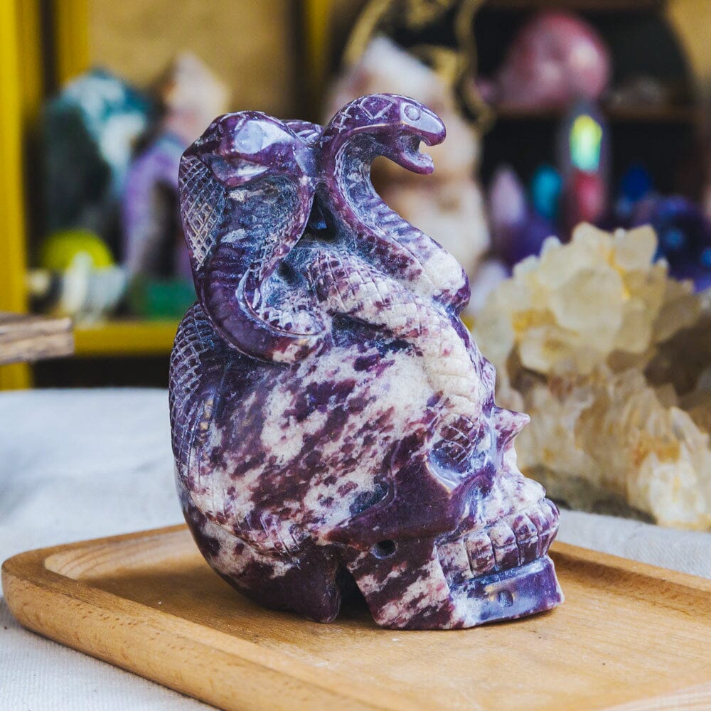 Lepidolite Skull With Snake