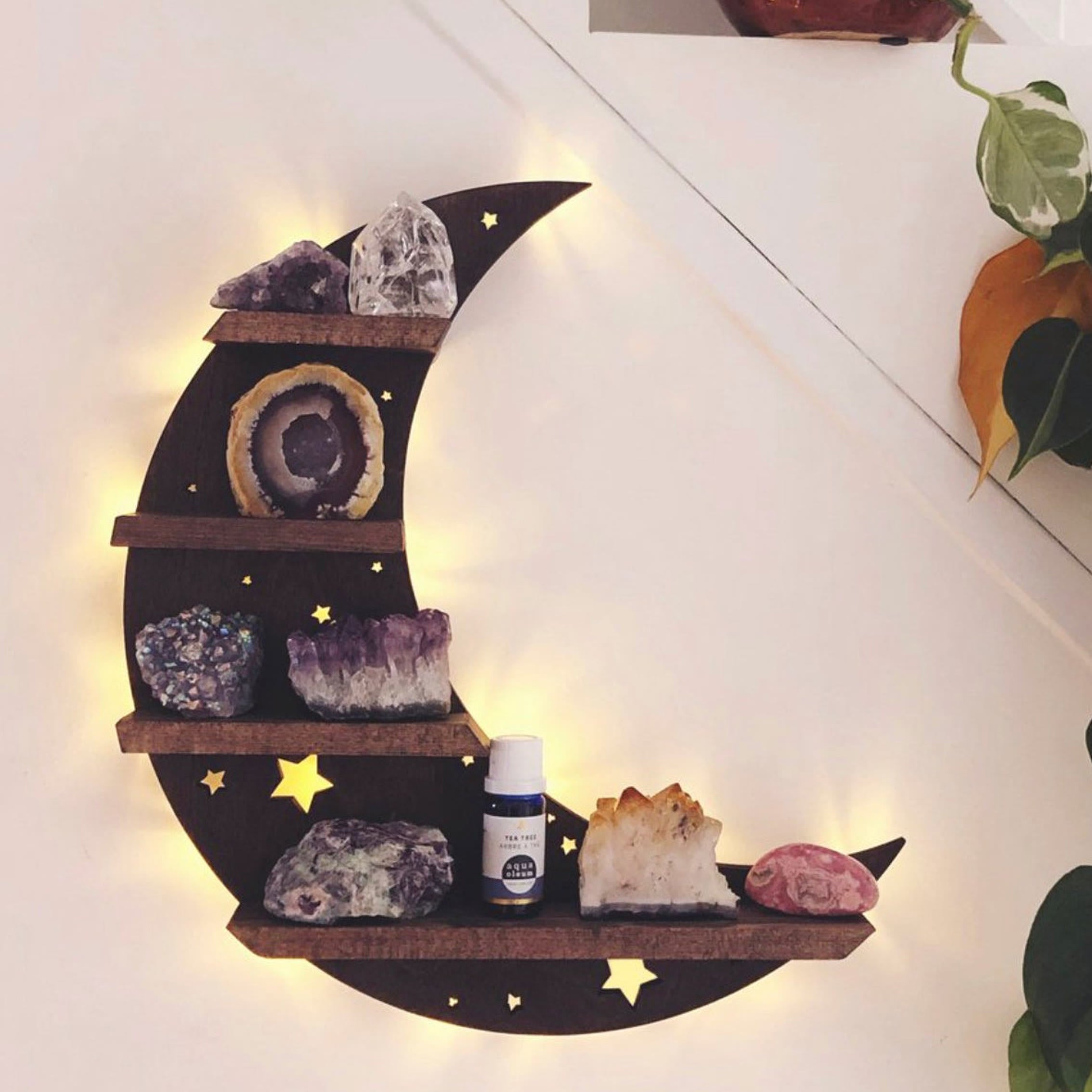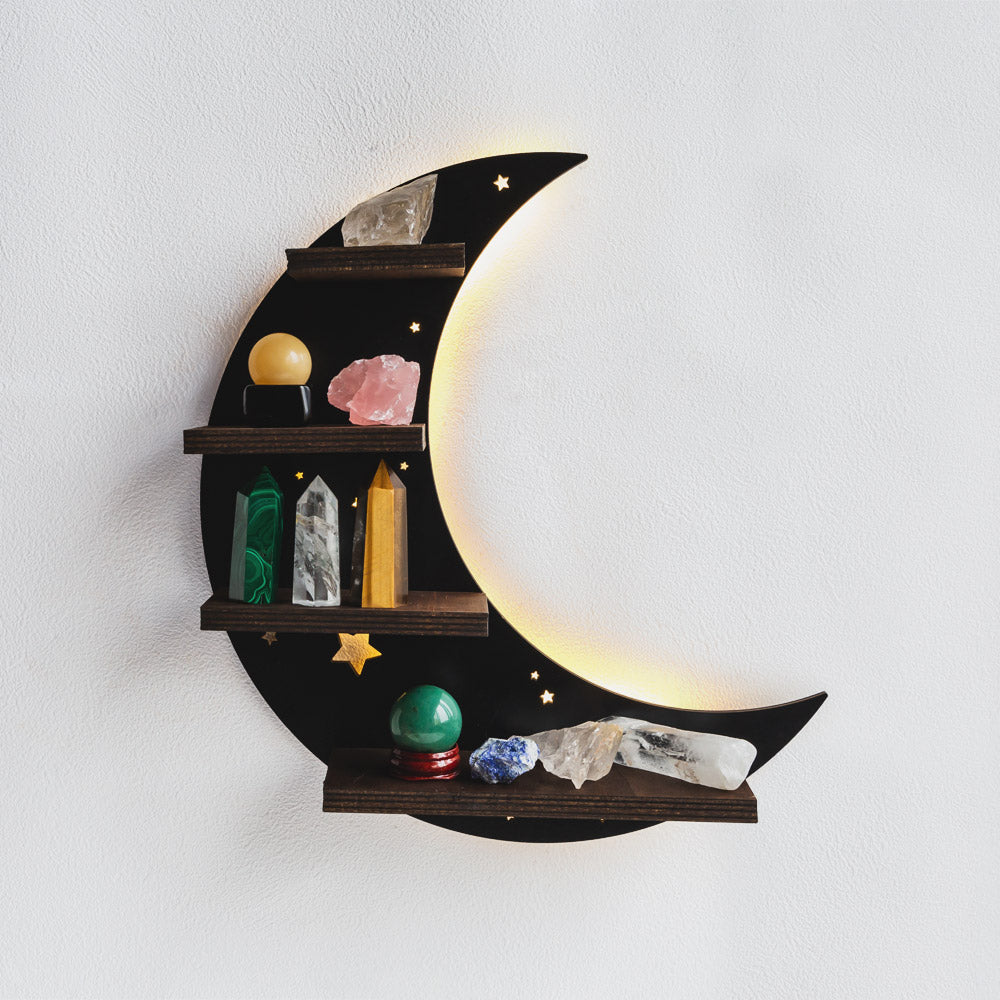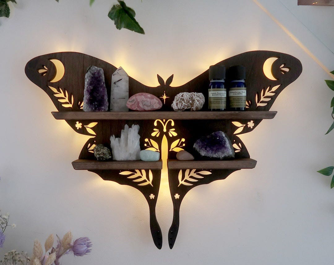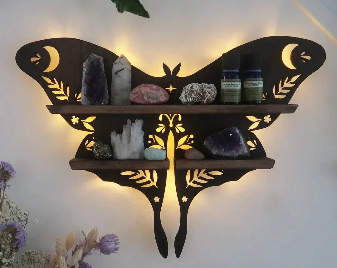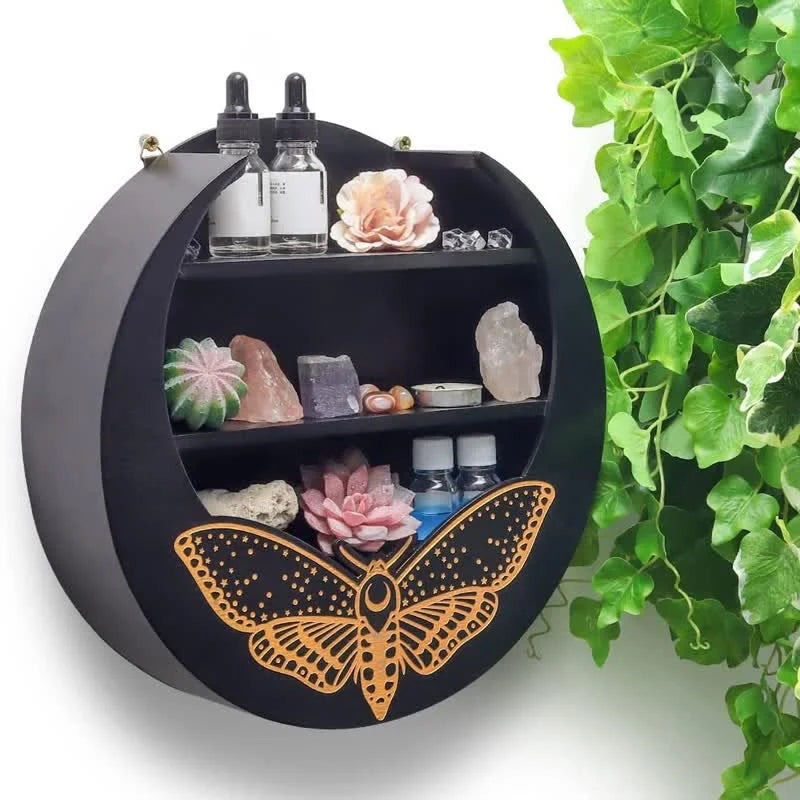 Magical Moth Moon Wooden Crystal Shelf