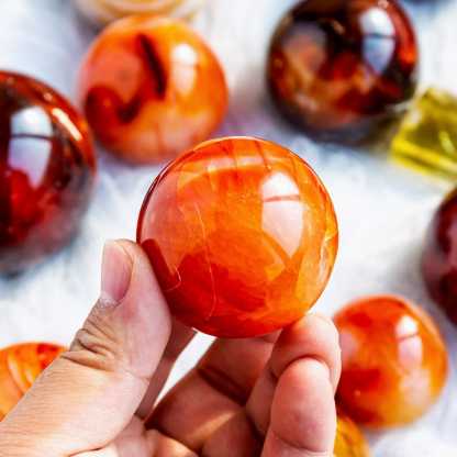• ► These orange, reddish-brown carnelian spheres are the perfect energy crystal to bring home. They boost your energy and activate the root/foundation chakra.
