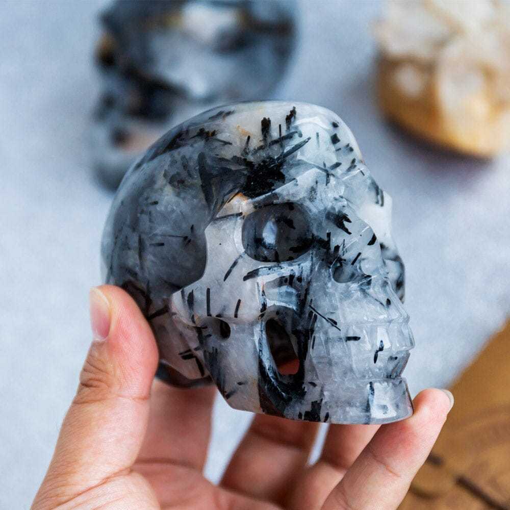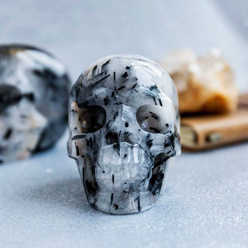 Black Tourmaline In Clear Quartz Skull