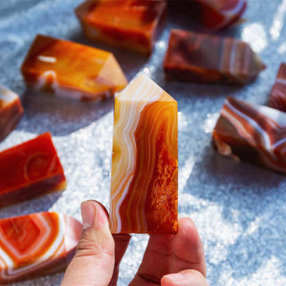 • ►Sardonyx Point is a unique natural stone composed of sard and onyx. It has a unique striped pattern and is known for its durability, making it a popular choice for jewelry and decorative applications. The striations are distinguished and create a beautiful complexity, giving Sardonyx Point a depth and multidimensional allure that cannot be found in other stones.