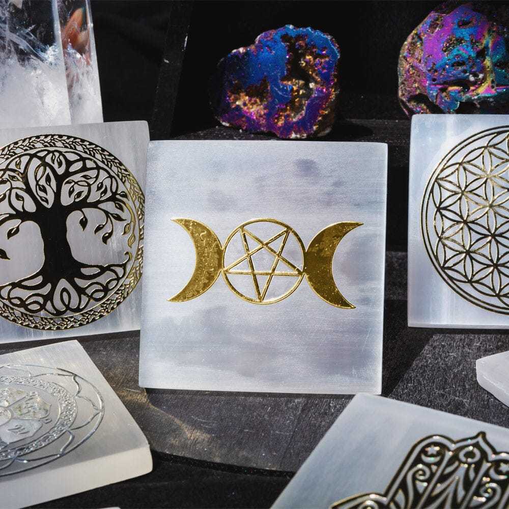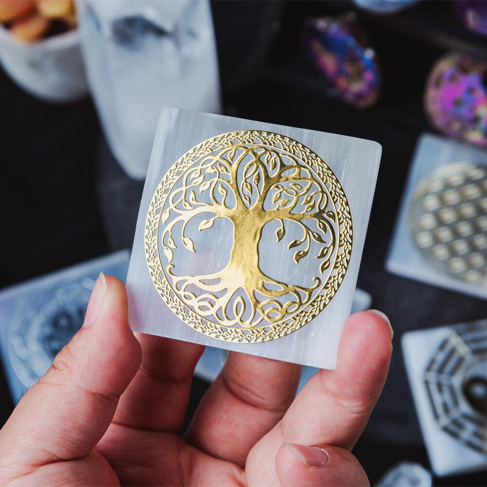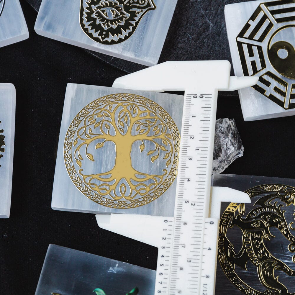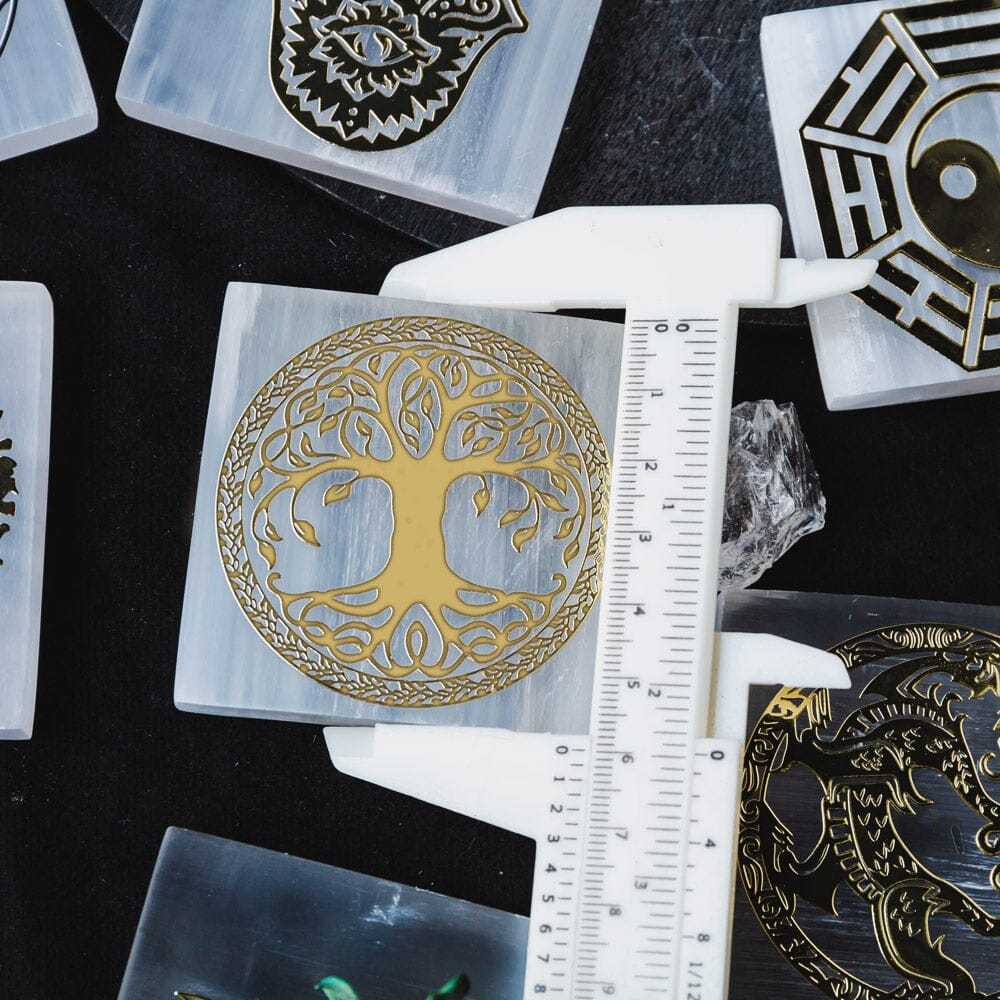 Selenite With Energy Diagram Square Slice