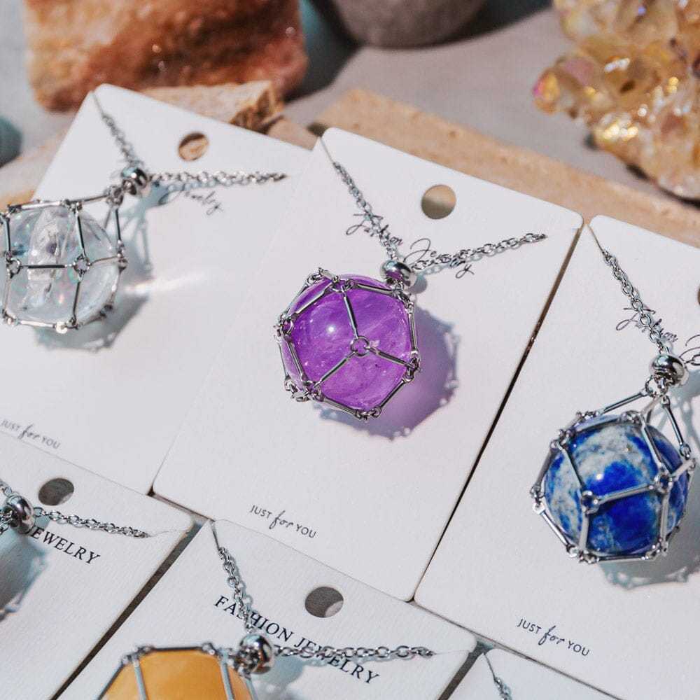 Reikistal Natural Crystal Ball Net Metal Bamboo Necklace Woven Pendant
