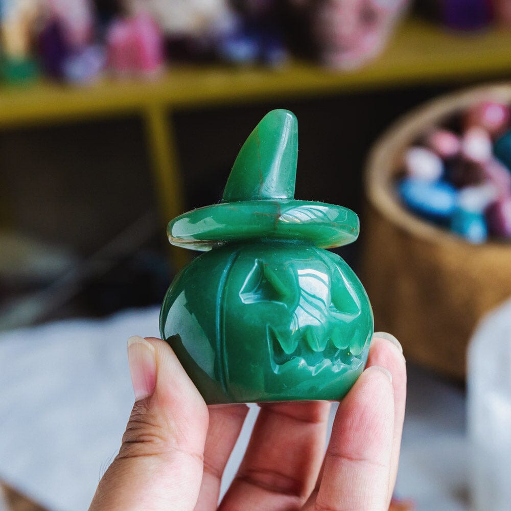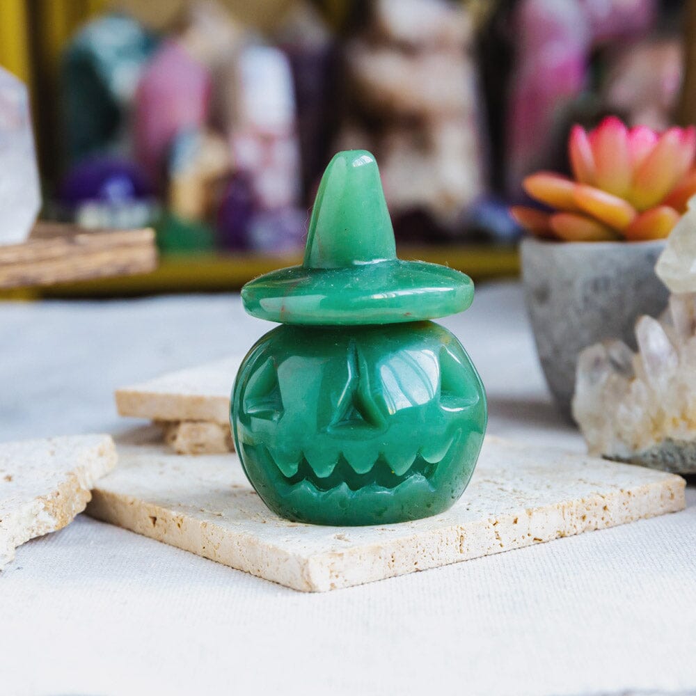 Green Aventurine Wizard Hat Pumpkin