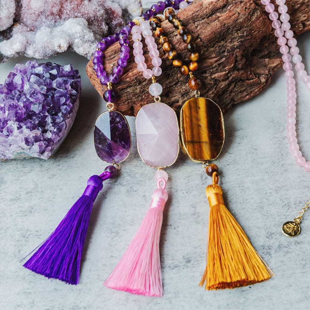Geometric Crystal Fringe Pendant Bead Necklace