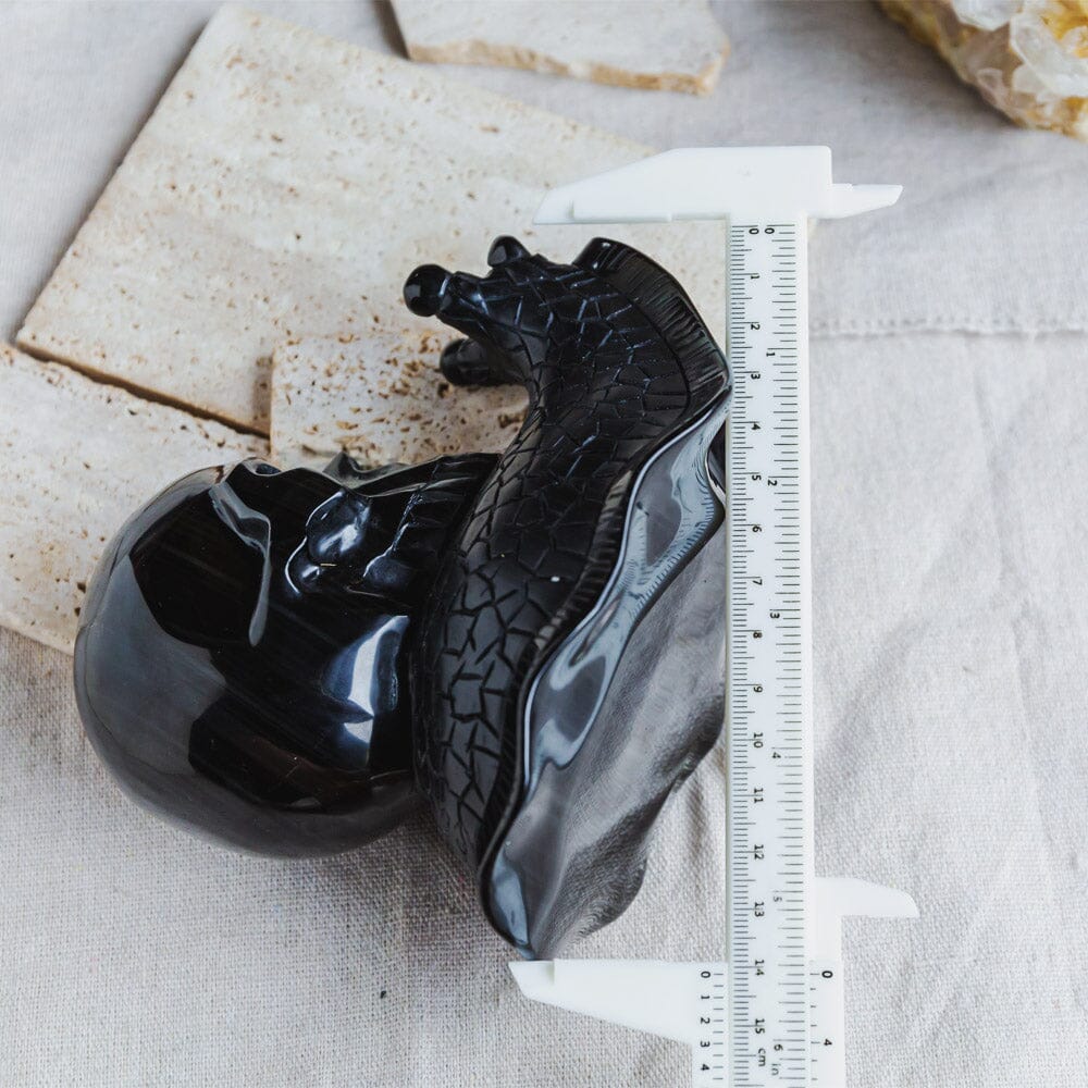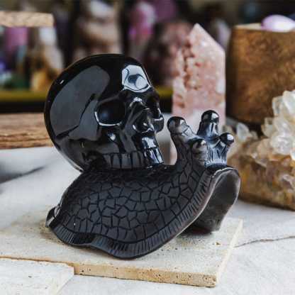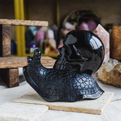 Silver Obsidian Skull With Snail