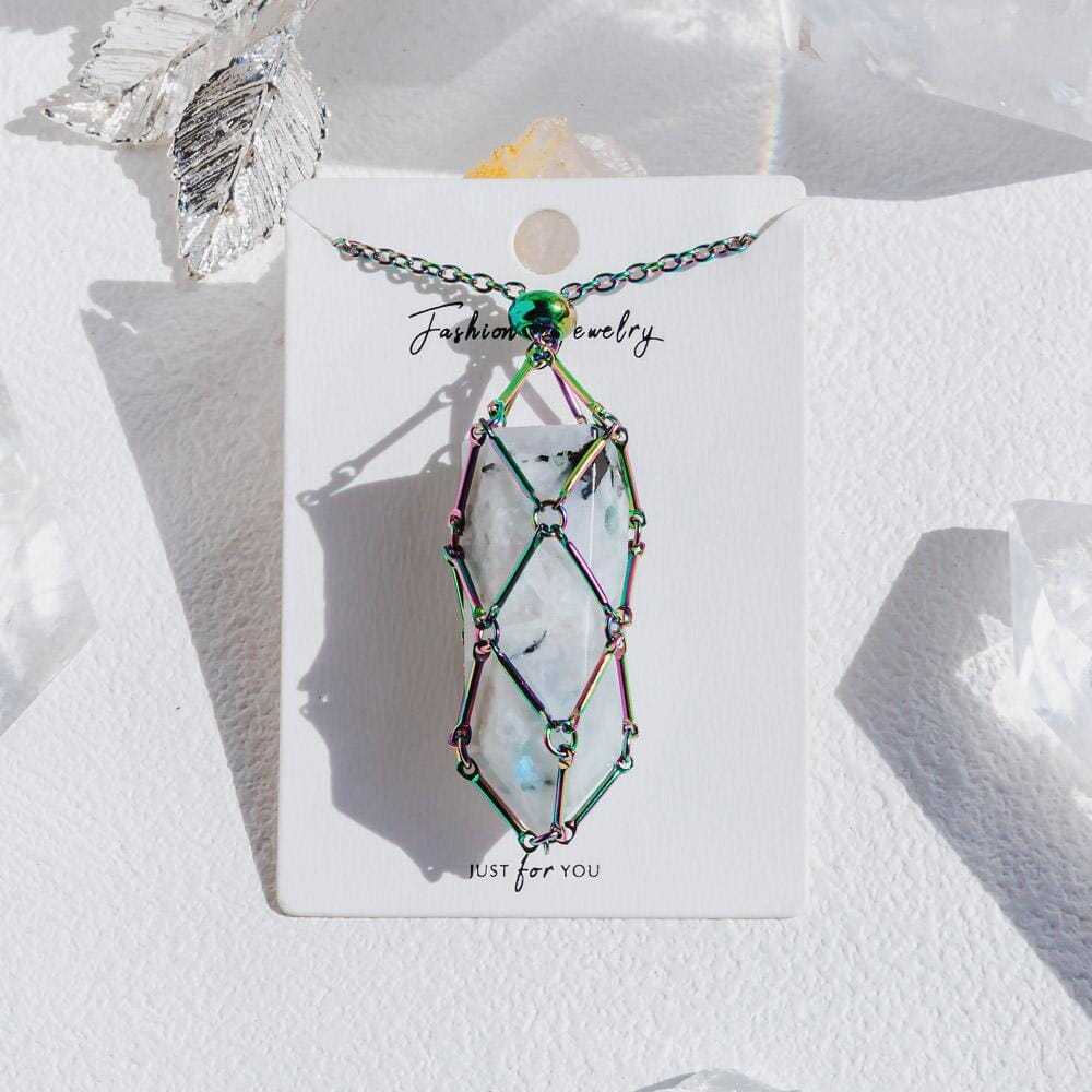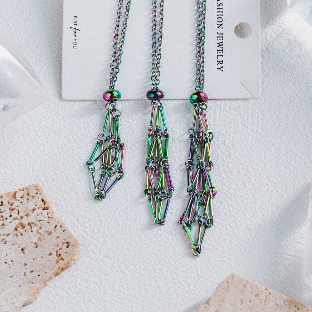Aura Net Metal Bamboo Necklace Woven Pendant