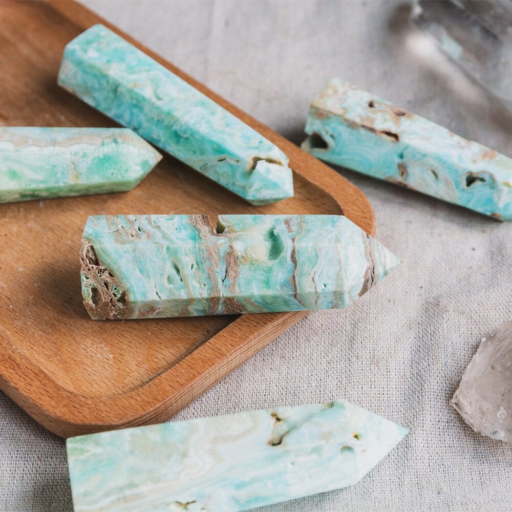 ►Aragonite is a powerful stone that balances the Root and Crown Chakras. It is believed to be a stone of Serenity and algnment as well as assisting in grounding you to help maintain a deep sense of tranquility and calm