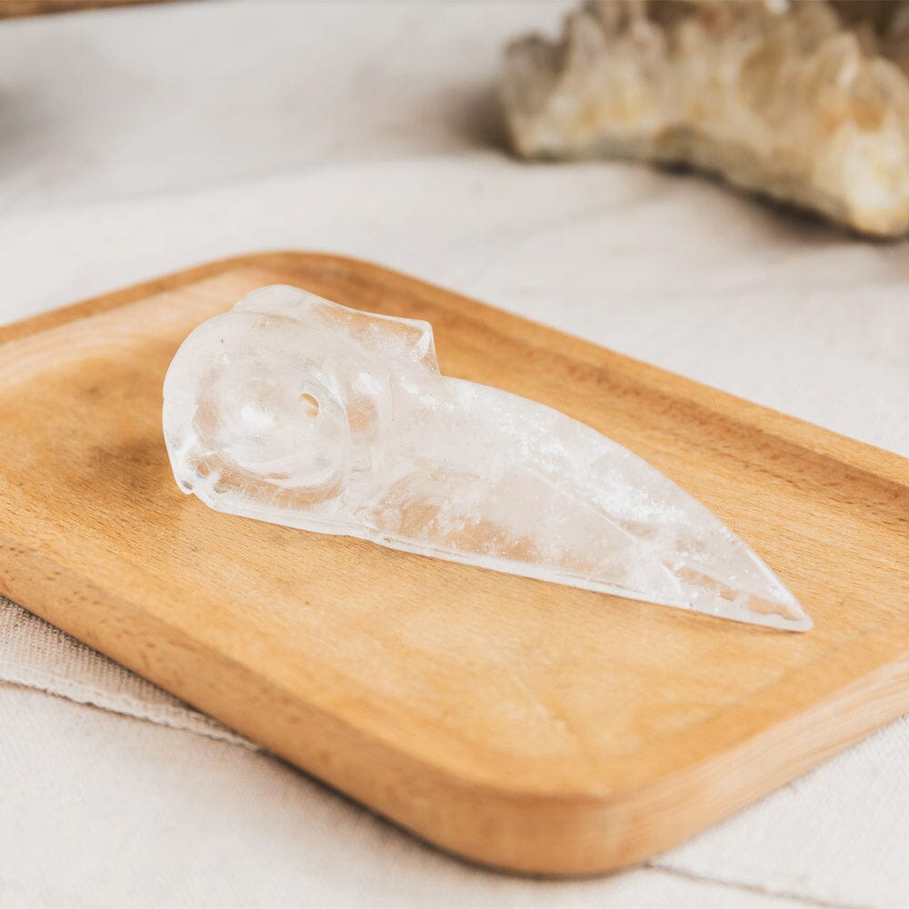 Clear Quartz Raven Skull
