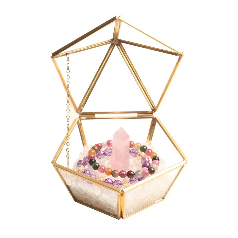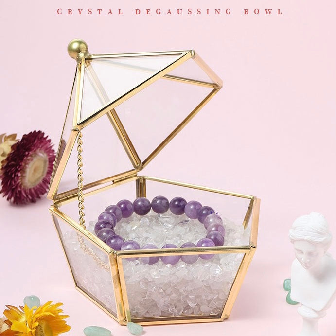 Copper-Edged Glass Demagnetizing Jewelry Box Stone Storage Decorative Piece