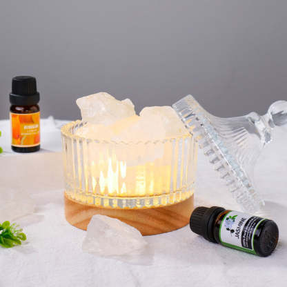 Crystal Mineral Salt Aromatherapy Diffuser Cup with LED Base for Home Indoor Scent Diffusing and Essential Oil Decoration with Festive Gift Giving