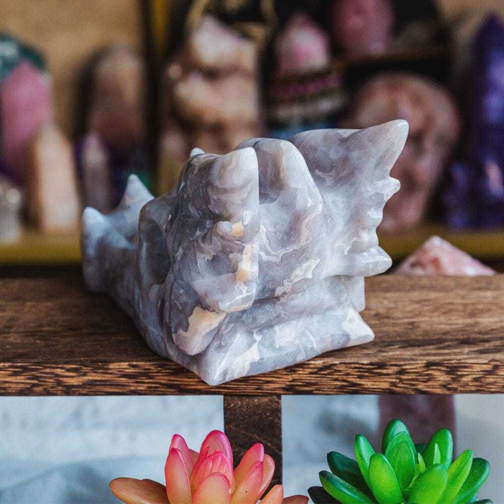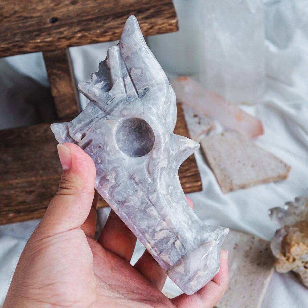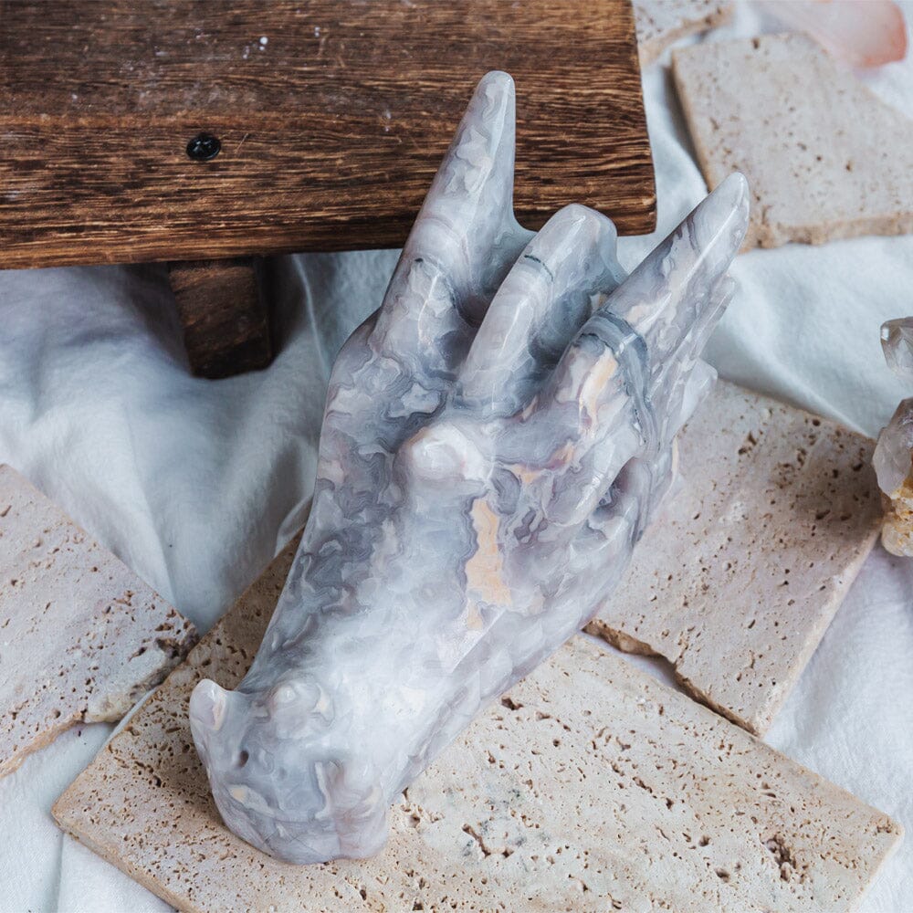 White Crazy Lace Agate Dragon Head