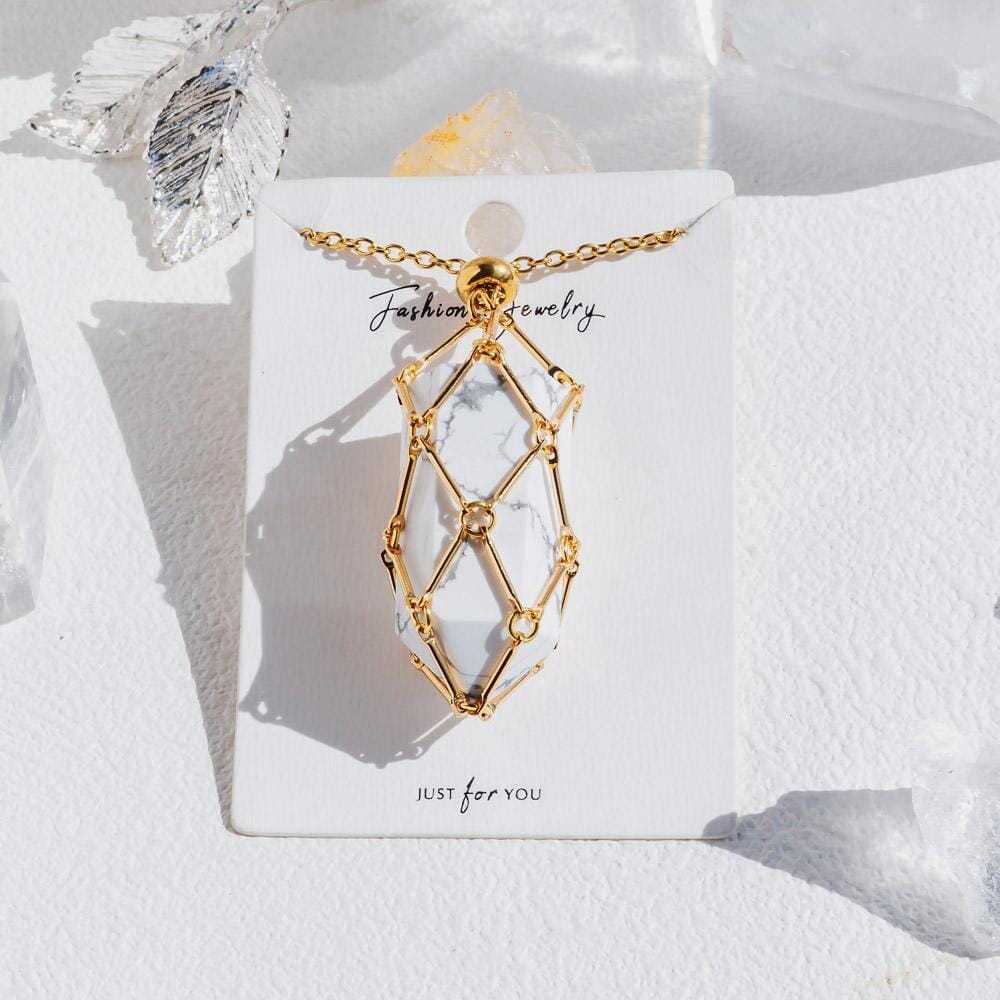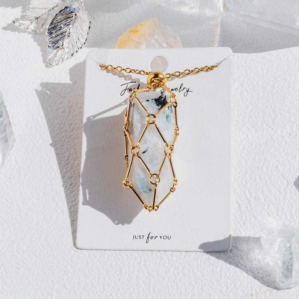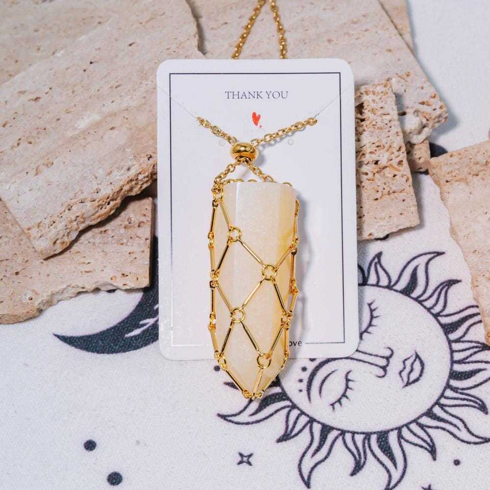 Gold Natural Crystal Net Metal Bamboo Necklace【Point/Tumbled】