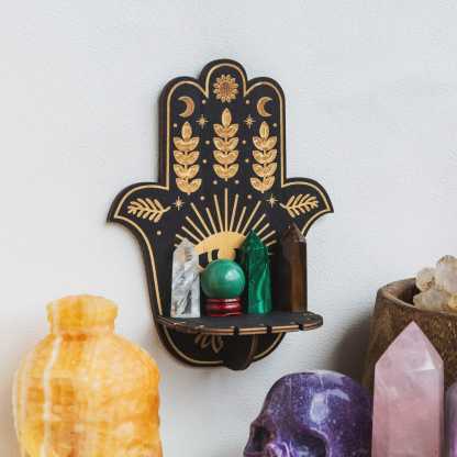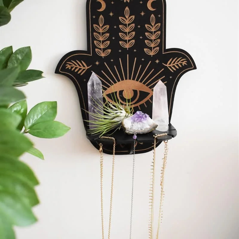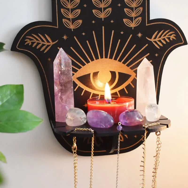 Hamsa Hand Floral Sun and Moon Altar Crystal Shelf