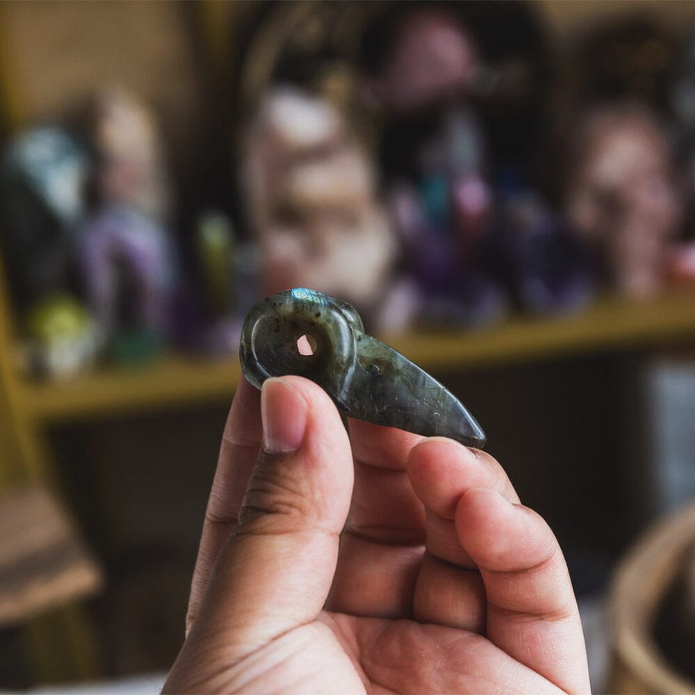 2" Labradorite Raven Skull