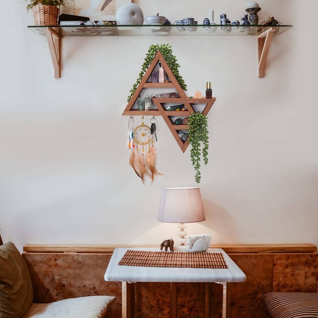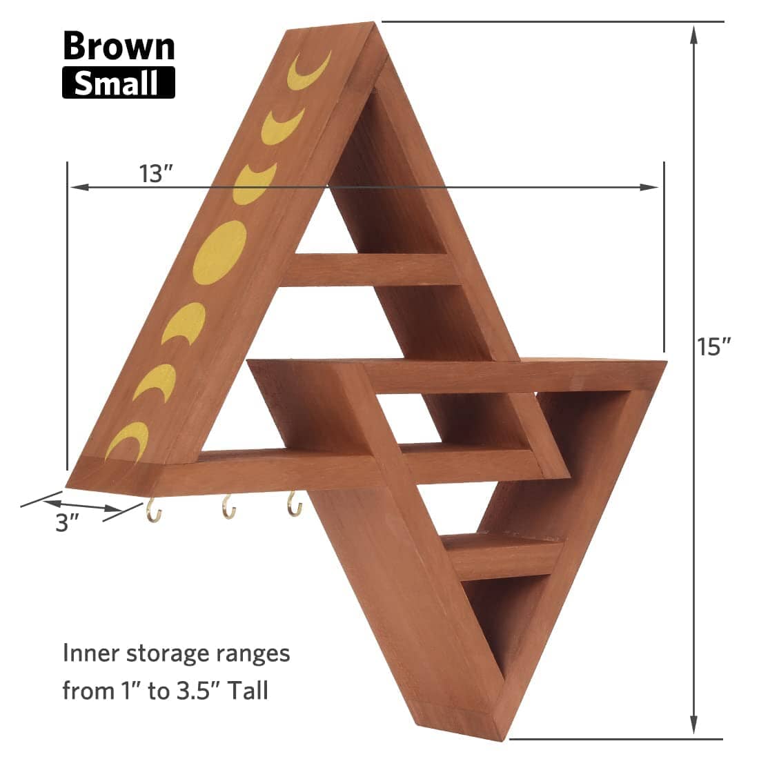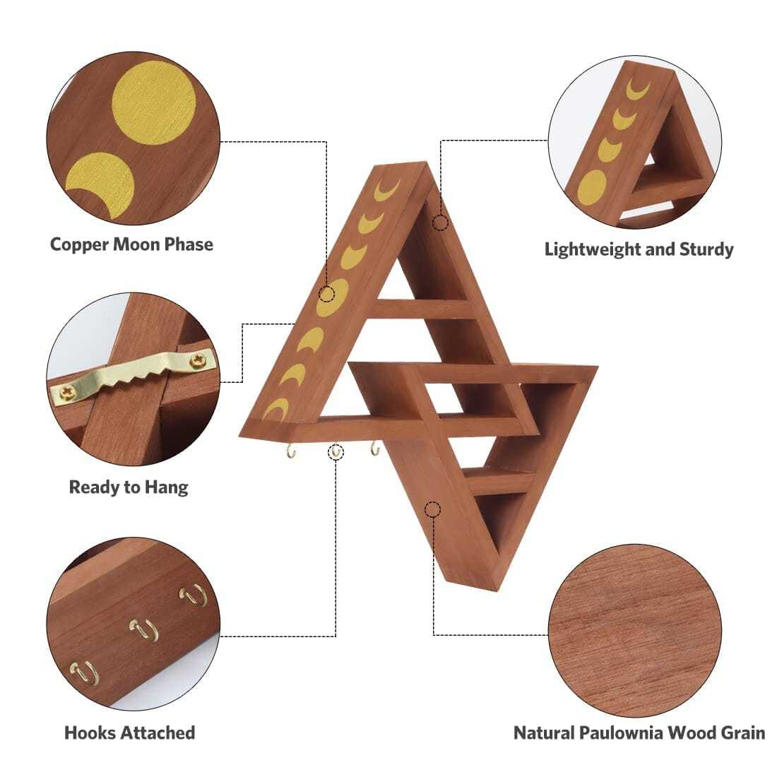 Moon Phase Triangle Shelf with Hooks