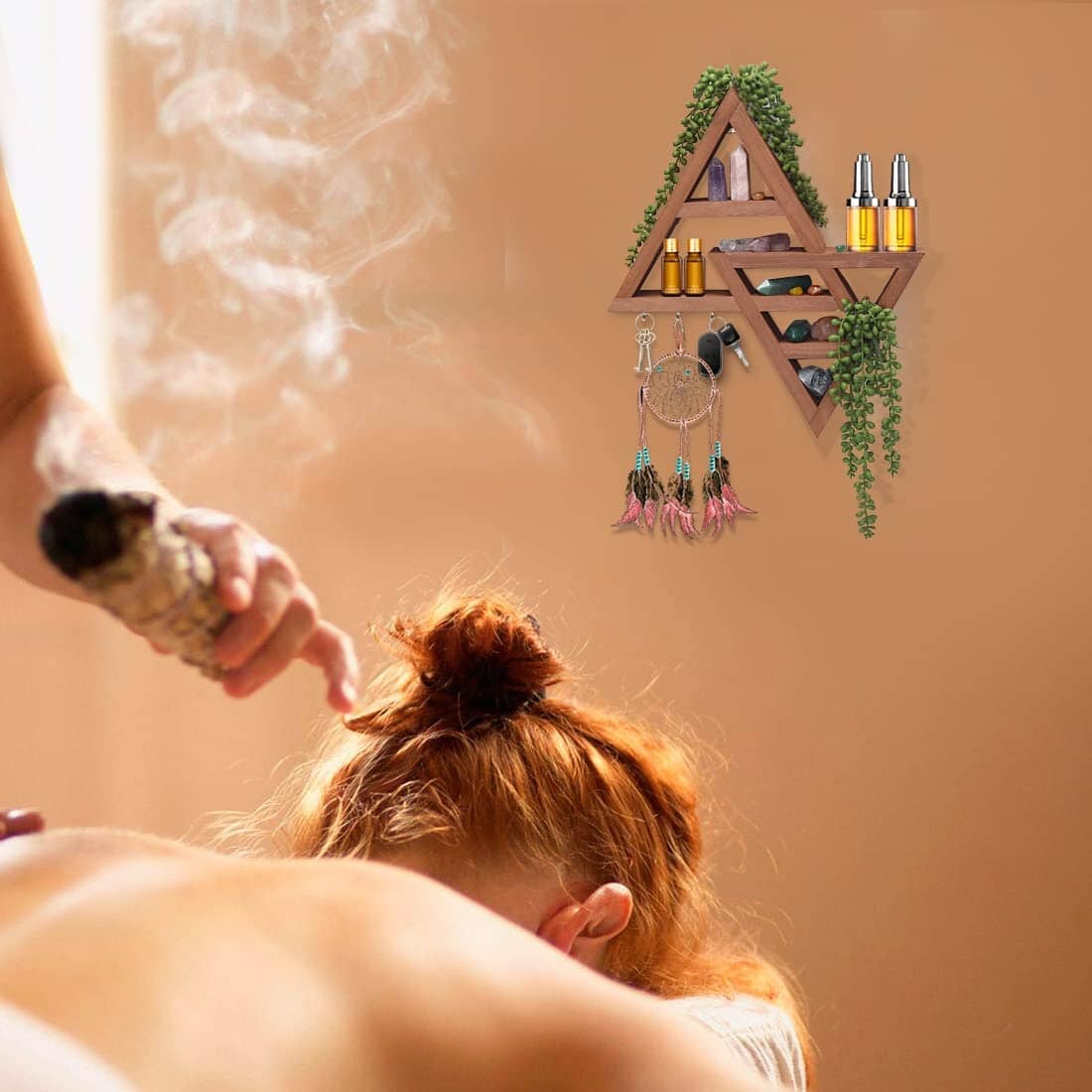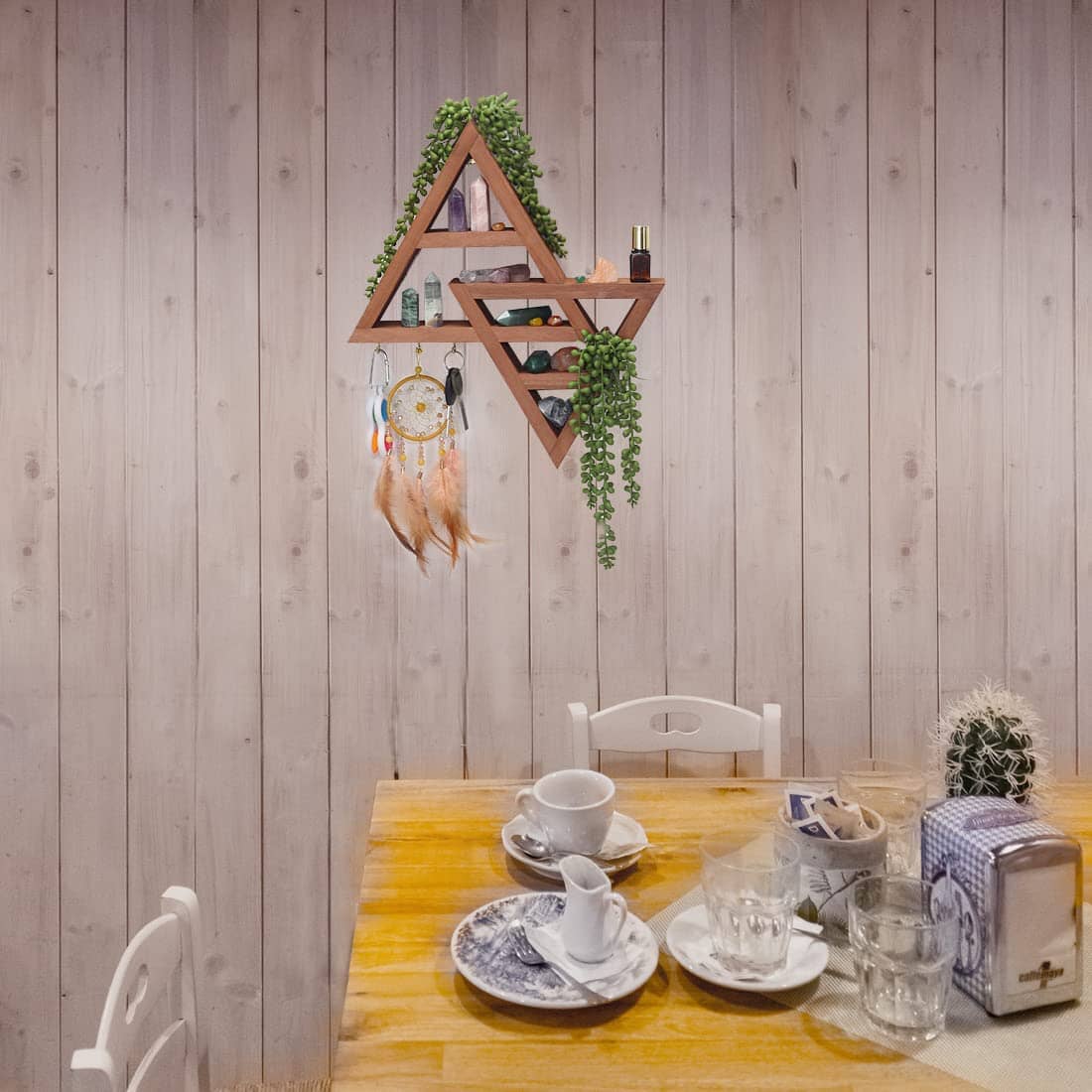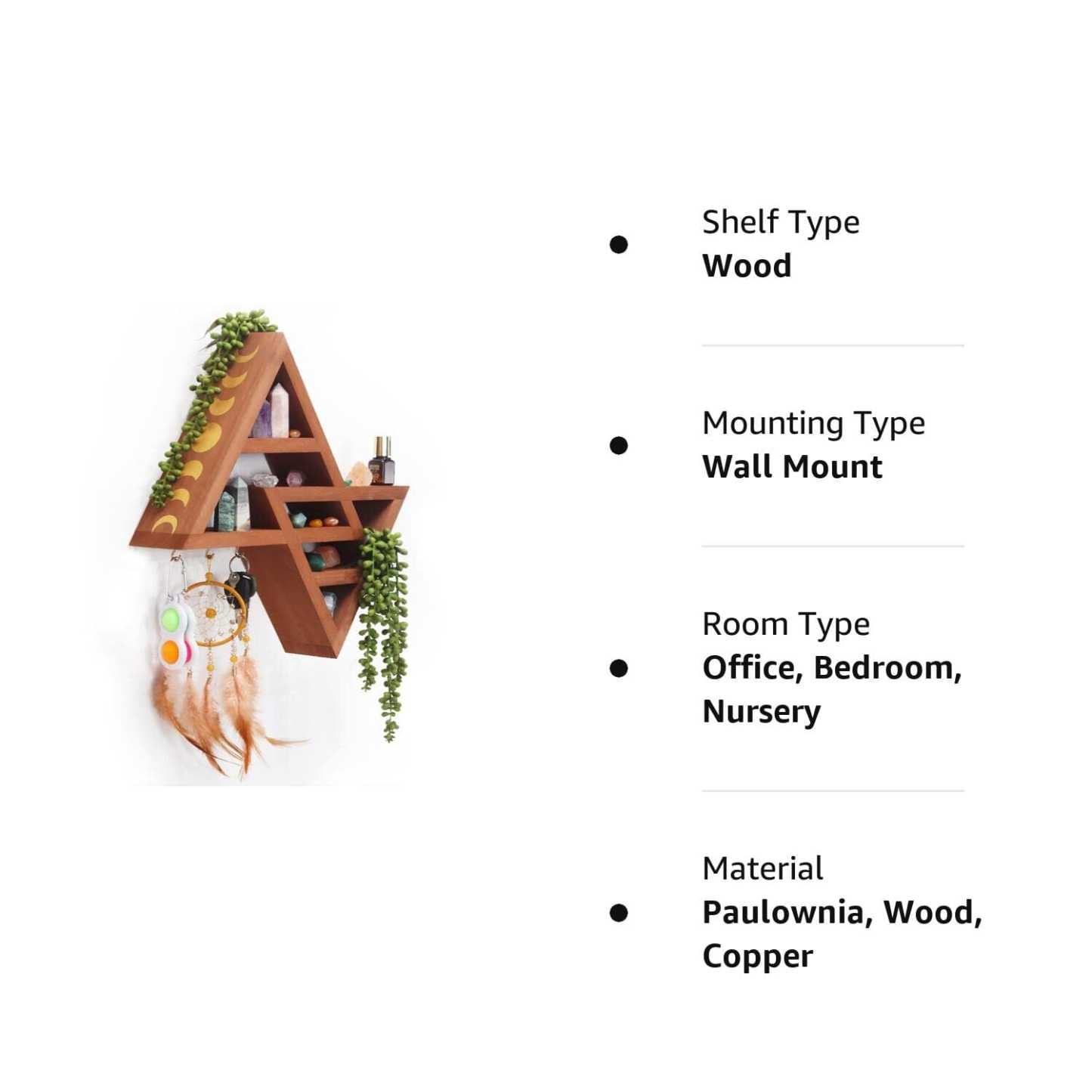 Moon Phase Triangle Shelf with Hooks