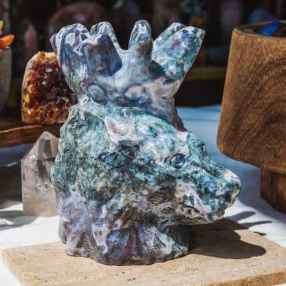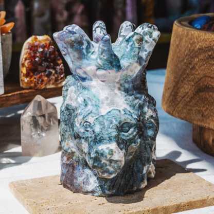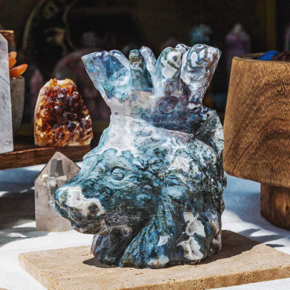 Moss Agate Lion Head