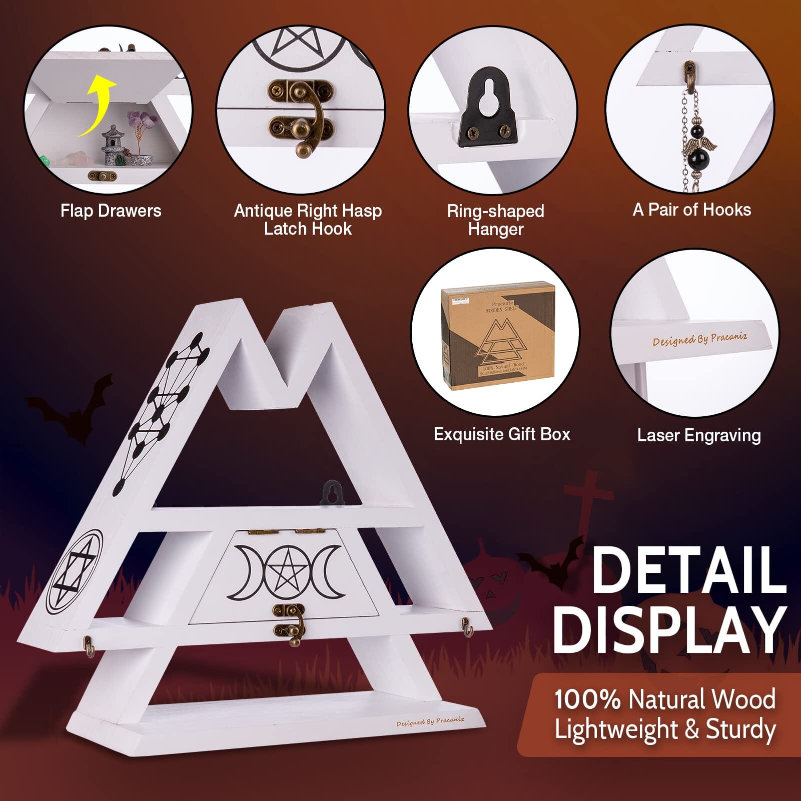 Pracaniz Crystal Shelf Display with Flap Drawer&Hooks