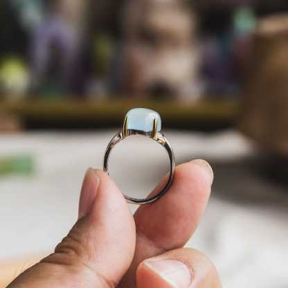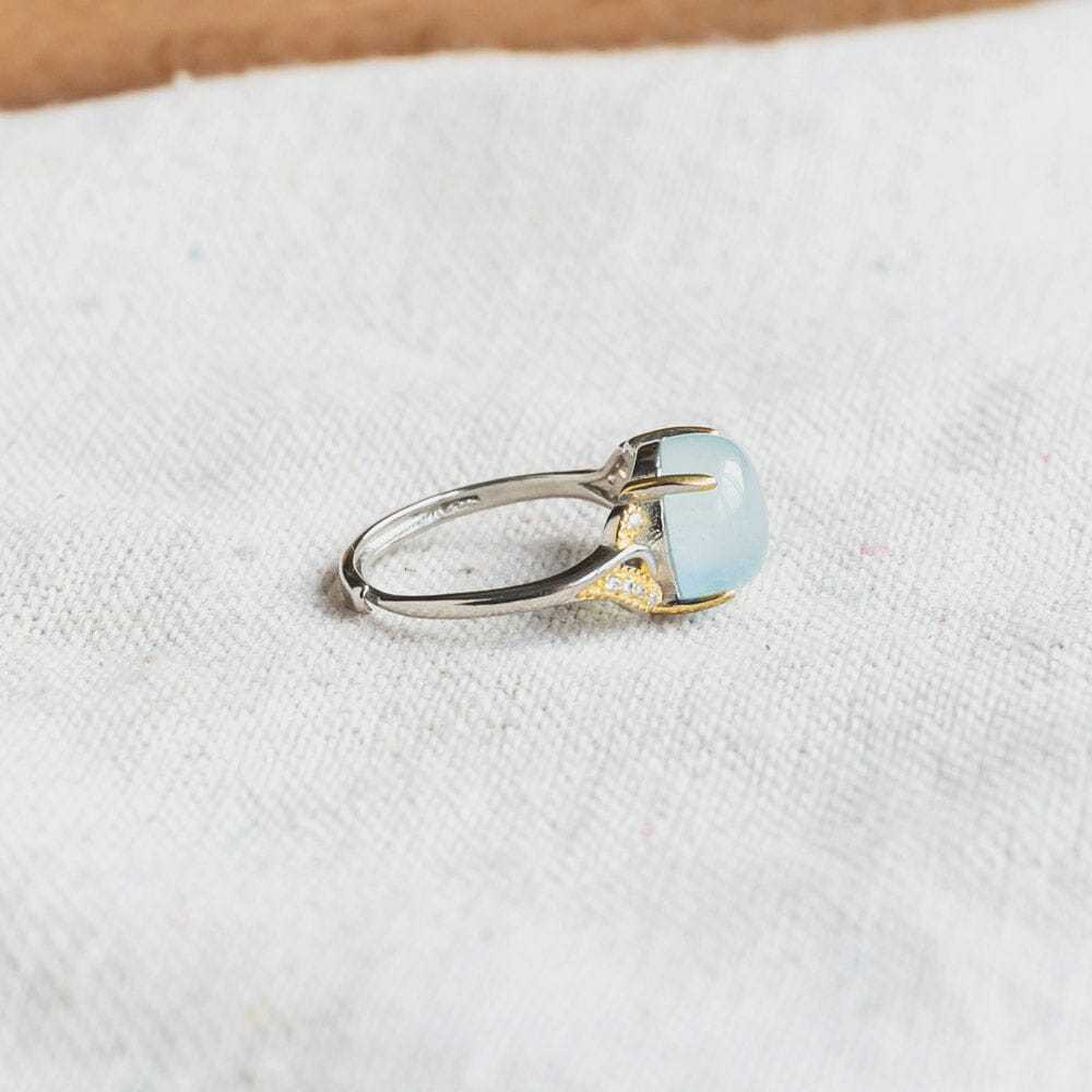 The Aquamarine Ring is a stunning piece of jewelry that will capture your heart with its serene and calming beauty. Made from high-quality materials, this ring features a sparkling aquamarine gemstone that exudes a soft blue-green hue reminiscent of the tranquil waters of the ocean. Aquamarine is known for its soothing and calming properties, and wearing this ring can help relieve stress and promote a sense of peace and clarity. The timeless design of the Aquamarine Ring makes it a perfect accessory for any occasion, whether it's a formal event or a casual outing. Treat yourself or a loved one to this exquisite ring and feel the calming energy it brings to your life.