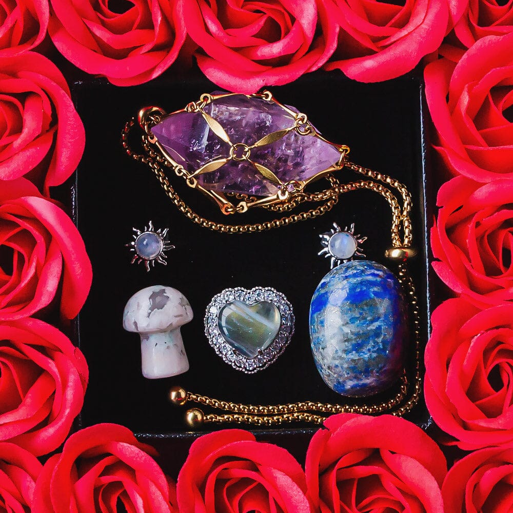 You can choose from the following gift box for your Mother's Mother's Day, the gift box contains natural crystal point, replaceable point, tumble, bracelet, stud, ring and other exquisite products, bracelet has 2 choices, you can choose silver or gold bracelet gift box, Thank you very much for your belief and choice, I believe that this will be a very good Mother's Day gift