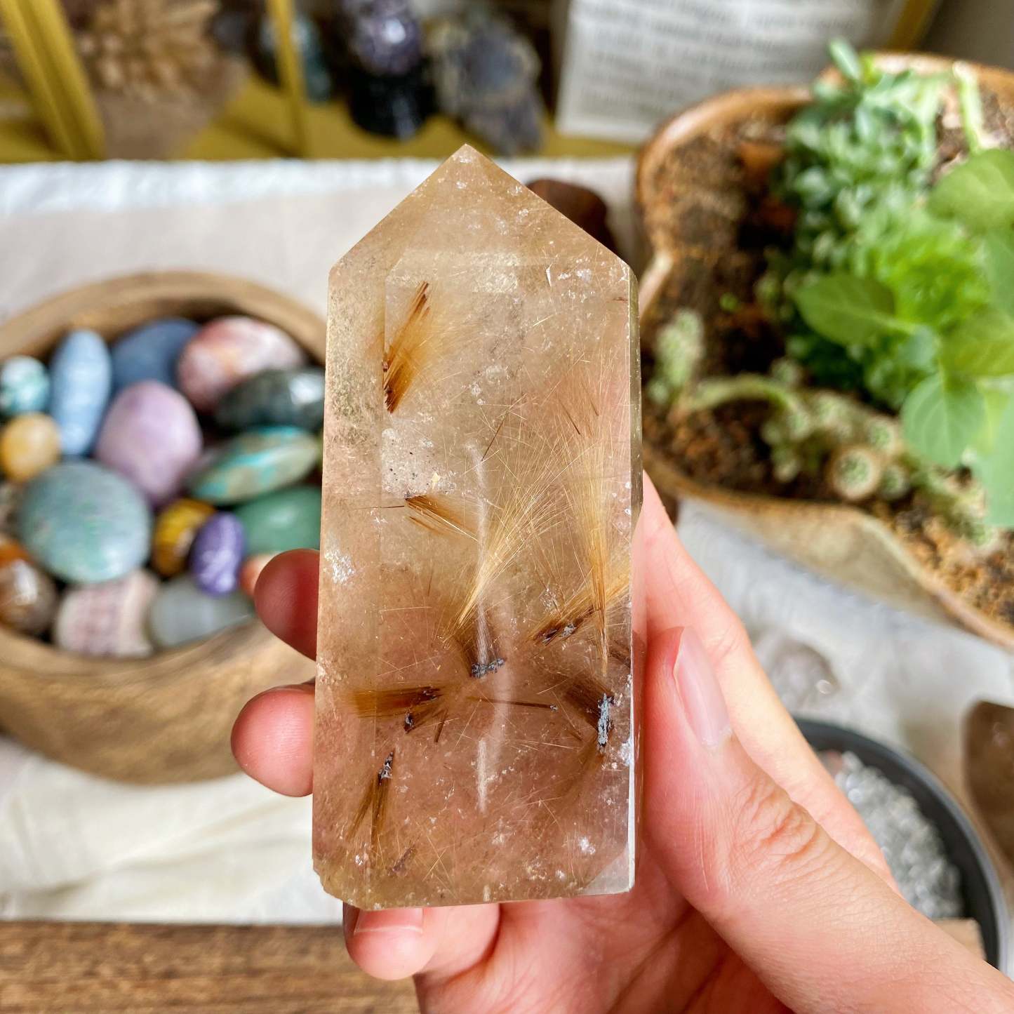 Rutilated Ouartz has a vitality that is helpful for chronicconditions and for impotence and infertility. lt is excellent forexhaustion and energy depletion. This crystal treats the respiratorytract and bronchitis, stimulates and balances the thyroid, repelsparasites. It stimulates growth and regeneration in cells and repairstorn tissues. lt is said to encourage an upright posture