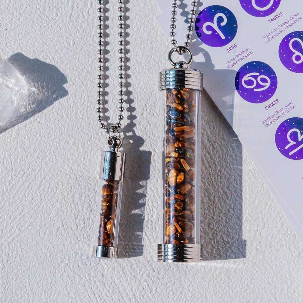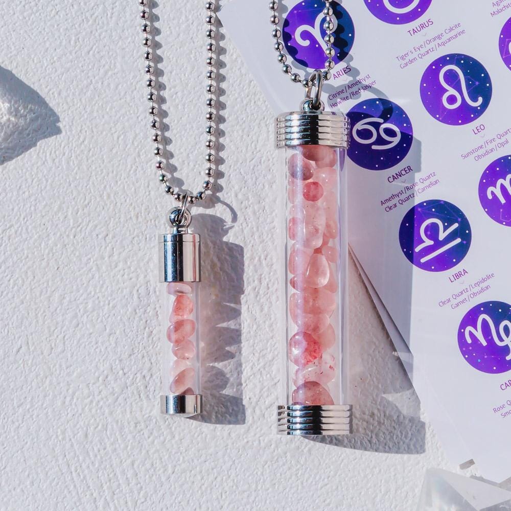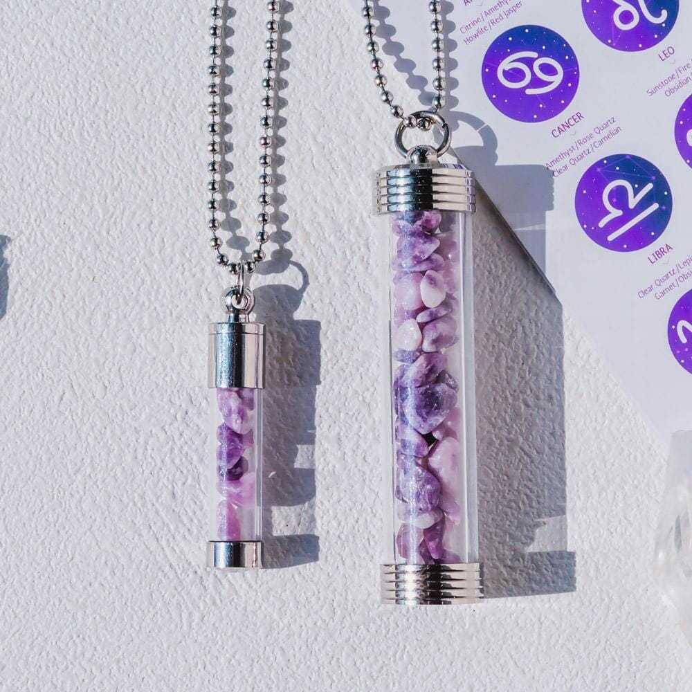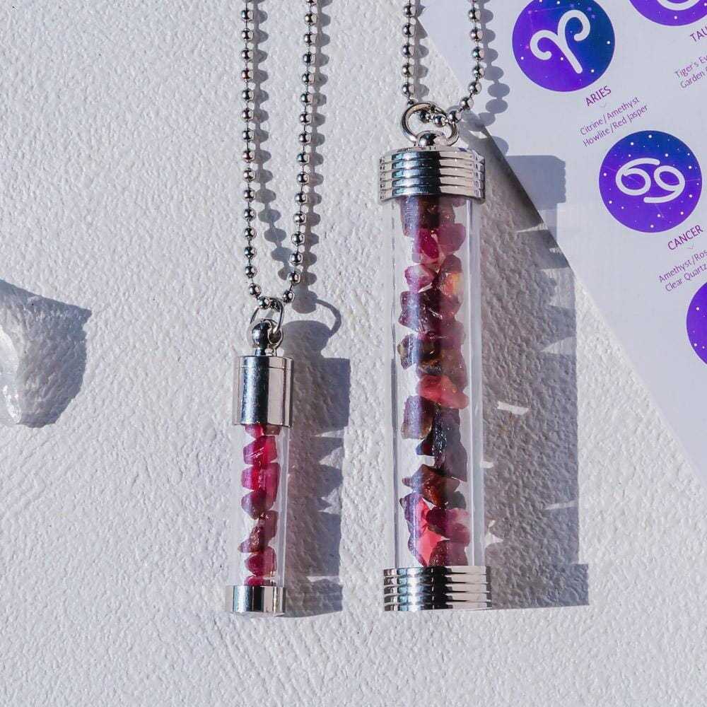【Zodiac】Natural Crystal Chips Wishing Bottle Necklace